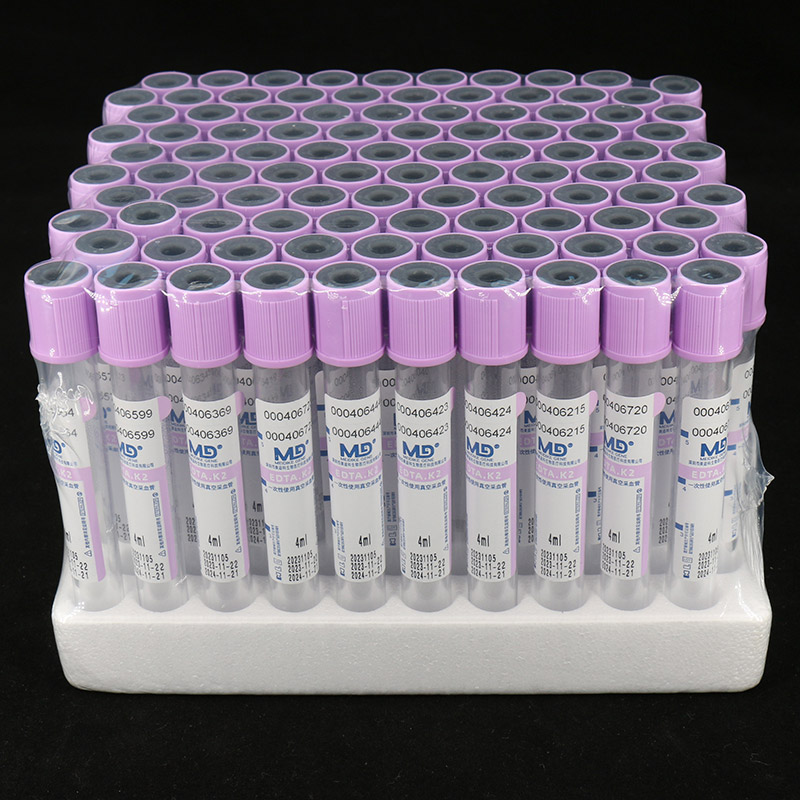 采血管内含有抗凝剂EDTA-K2(乙二胺四乙酸二钾),在血常规检测中EDTA抗凝剂与其他抗凝剂比较而言,对血球的凝集及血细胞的形态影响较小。EDTA可以与血液中的钙离子结合,从而阻止血液凝固,这种采血管采集的血液样本适合用于血型检测,血细胞计数、血红蛋白测定等血常规检查。