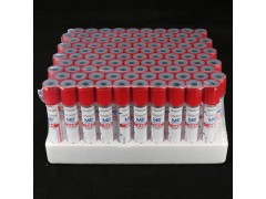 产品说明:采血管内璧均匀涂有防止挂璧的硅油,同时添加了促凝剂。促凝剂可激活纤维蛋白酶,使可溶性纤维蛋白变为不可溶的纤维蛋白多聚体,进而形成稳定的纤维蛋白凝块。快速血清管可在5分钟内使采集的血液凝固,适用于急诊血清系列化试验。